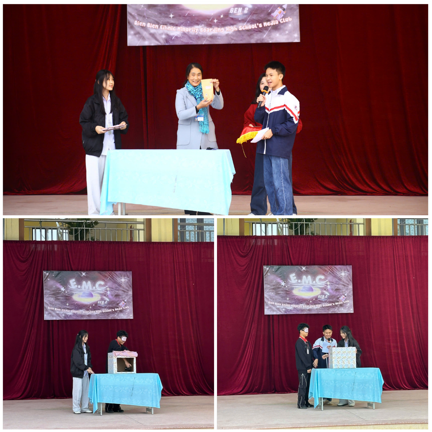 Điểm nhấn của sự kiện là chuỗi trò chơi tập thể mang tính tương tác cao như “Đoàn tàu bóng bay” hay “Chiếc hộp bí mật”. Thông qua các hoạt động này, học sinh không chỉ được giải trí mà còn có cơ hội hiểu rõ hơn về lĩnh vực truyền thông, từ vai trò của máy ảnh, máy tính cho đến ý nghĩa thương hiệu E.M.C - biểu tượng cho tinh thần sáng tạo, đoàn kết và đổi mới không ngừng của câu lạc bộ.