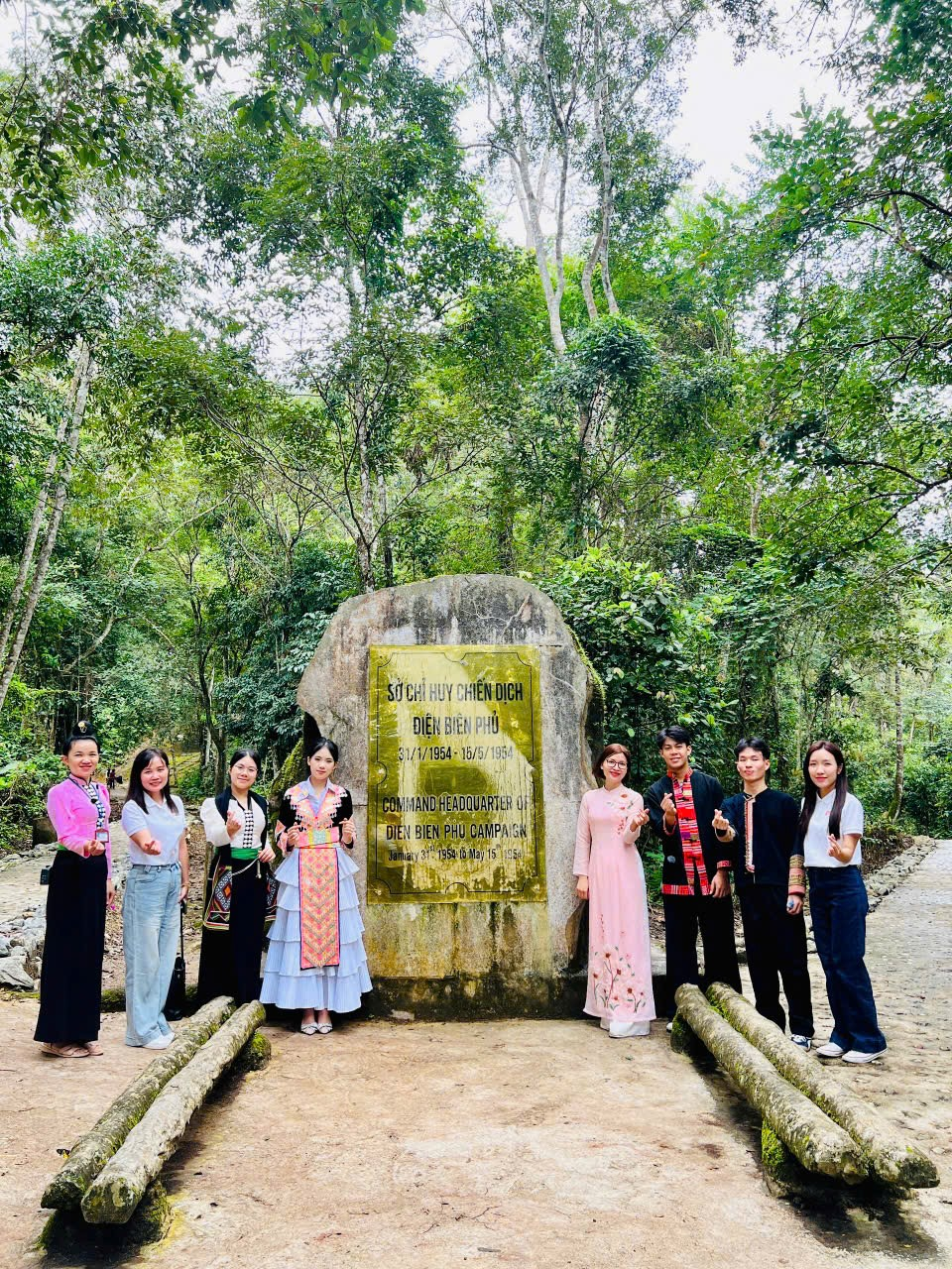 Hình ảnh cô trò cùng Đoàn tại Sở chỉ huy chiến dịch Điện Biên Phủ