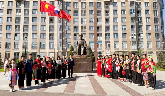 tại Tượng đài Chủ tịch Hồ Chí Minh ở Quảng trường Hồ Chí Minh, thành phố Saint Petersburg, Liên bang Nga