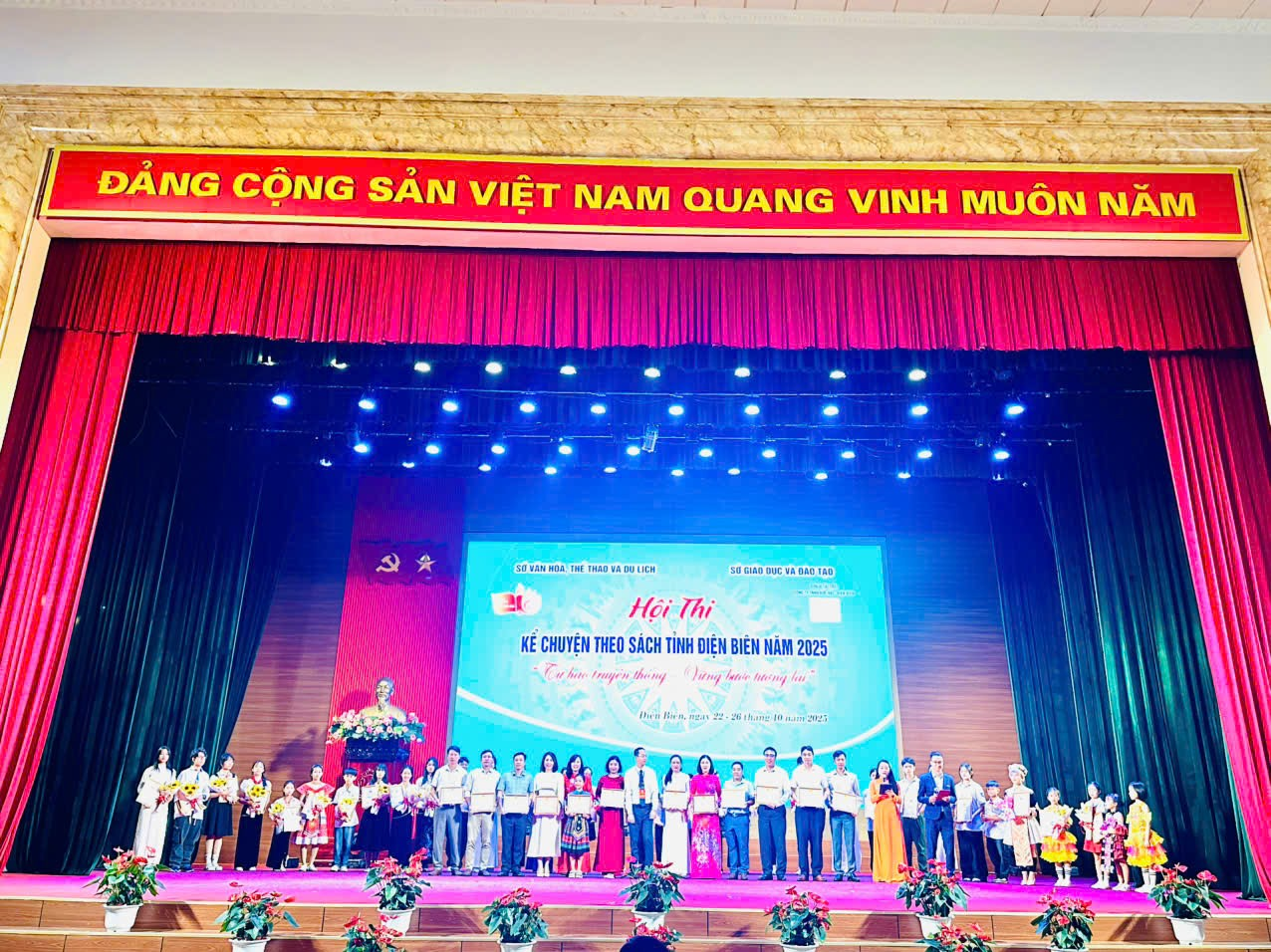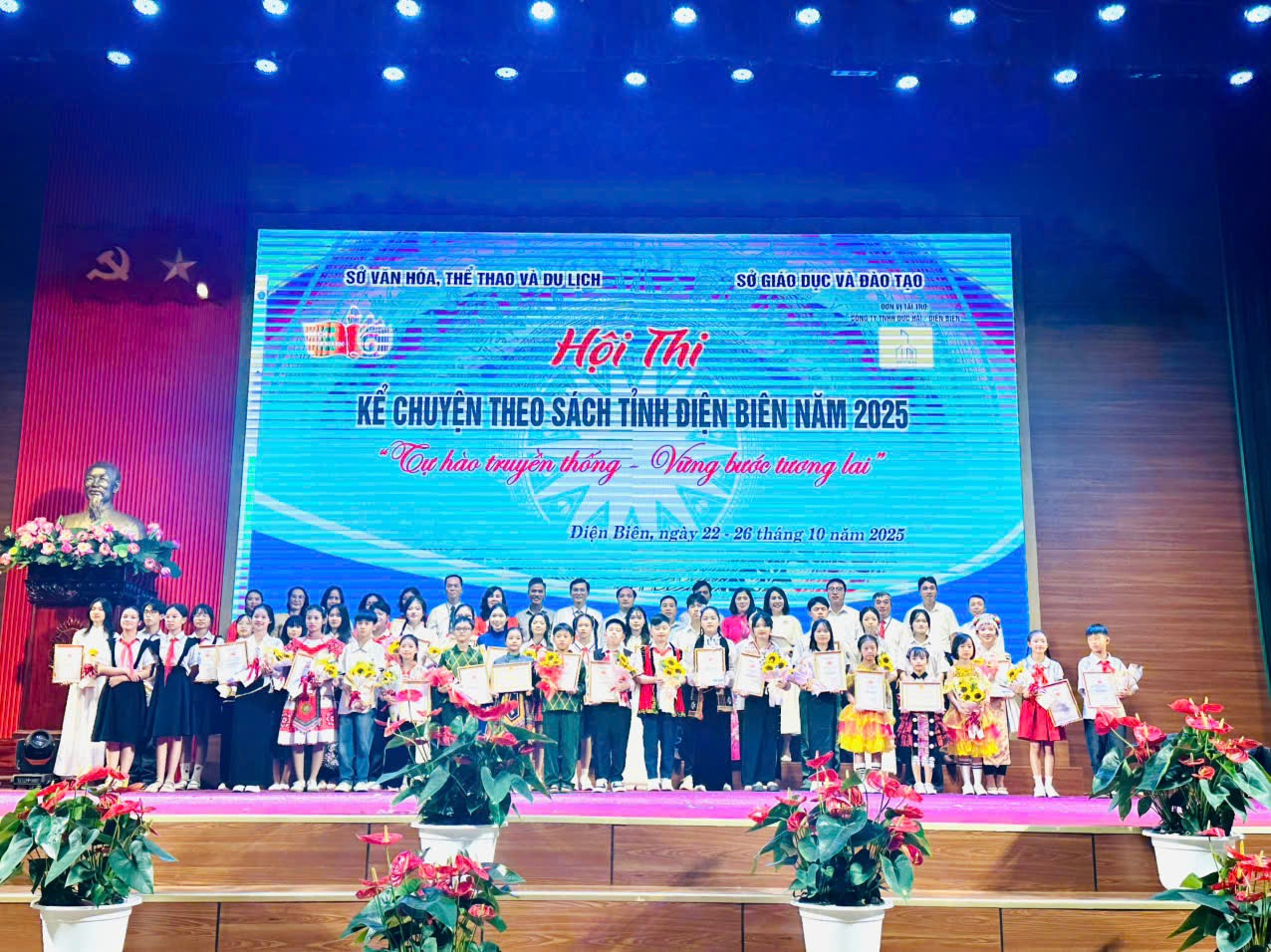 Sau 04 ngày tranh tài sôi nổi (từ ngày 23/10 đến 26/10/2025) tại Hội thi Kể chuyện theo sách tỉnh Điện Biên với chủ đề: “Tự hào truyền thống - Vững bước tương lai”, Trường Phổ thông Dân tộc Nội trú (PTDTNT) THPT tỉnh Điện Biên đã xuất sắc giành được chiến thắng tuyệt đối, không chỉ khẳng định tài năng, bản lĩnh của các em học sinh mà còn là minh chứng hiệu quả cho công tác giáo dục, lan tỏa tình yêu với sách và văn hóa đọc sâu rộng tới tập thể cán bộ, giáo viên, nhân viên và các em học sinh trong nhà trường.