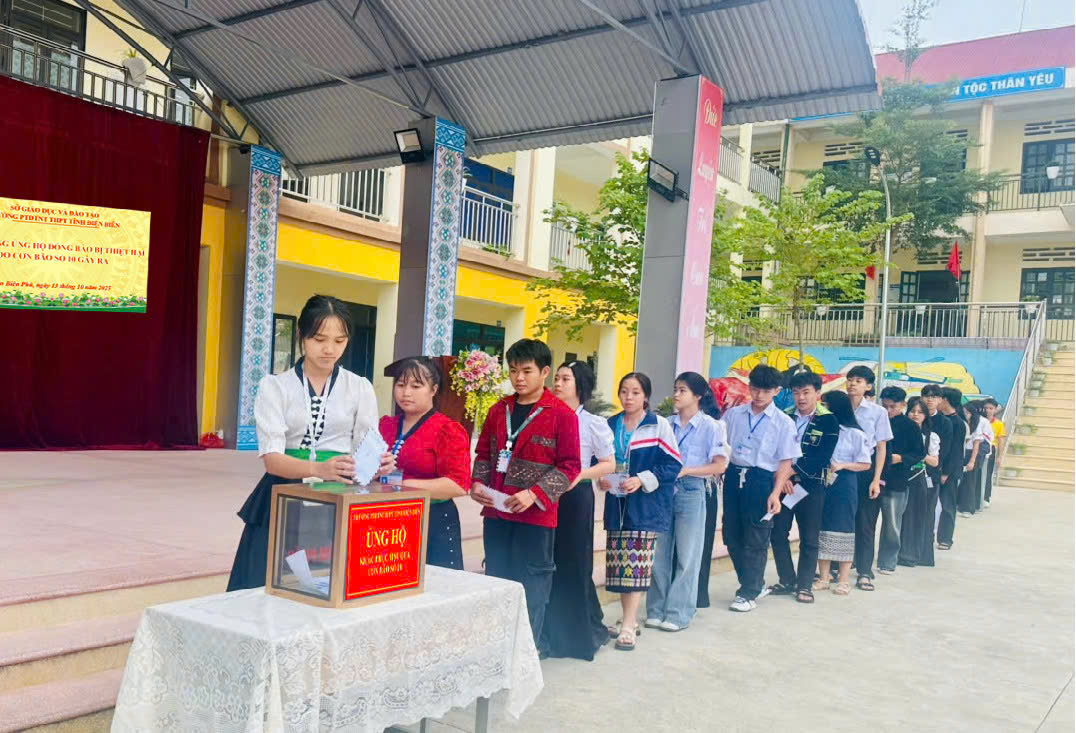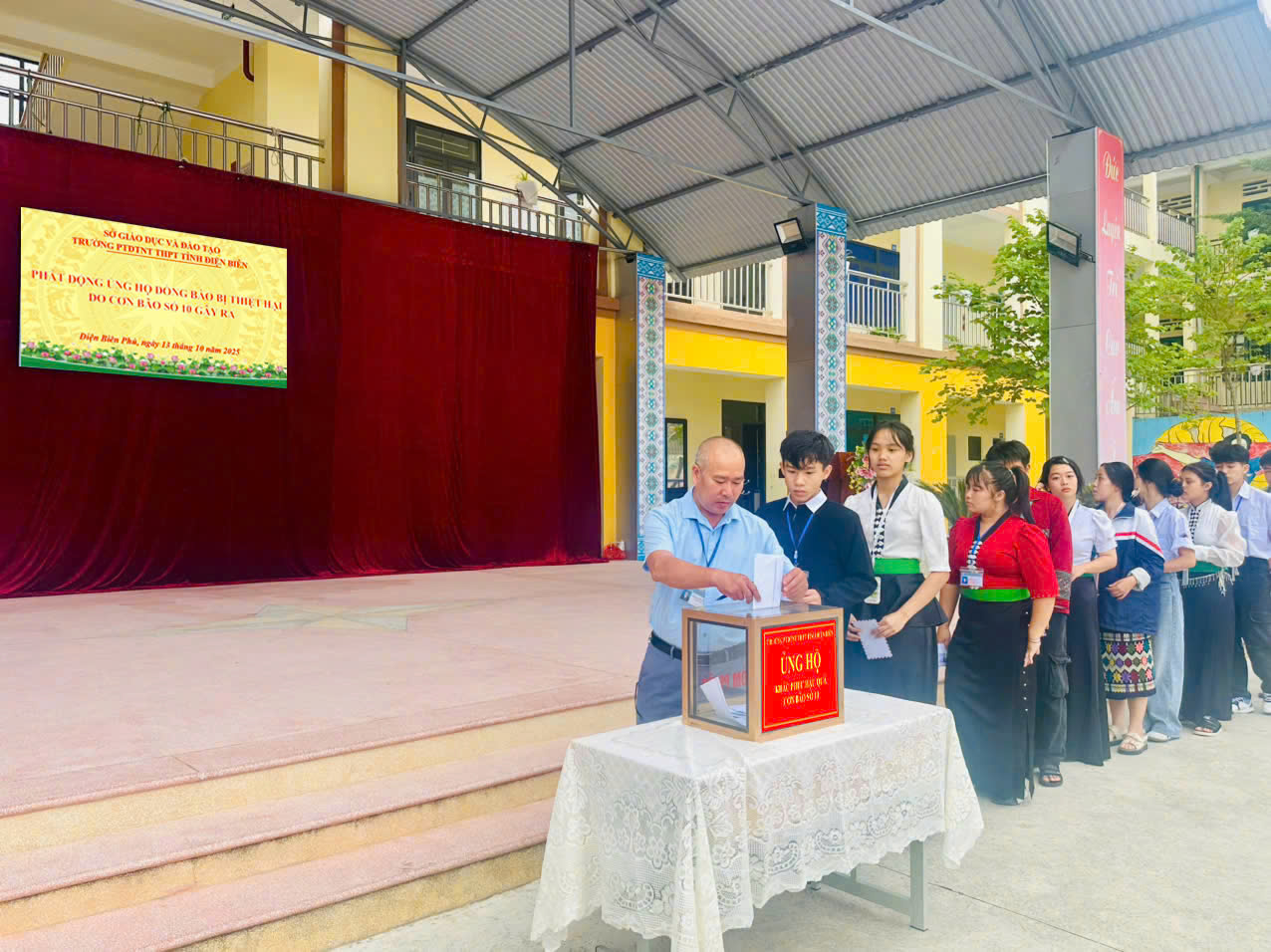 Hưởng ứng lời kêu gọi của Ủy ban MTTQ Việt Nam tỉnh Điện Biên, phát huy truyền thống đoàn kết quý báu của dân tộc ta, với tinh thần "tương thân tương ái", "lá lành đùm lá rách". Sáng 13/10, Trường PTDTNT THPT tỉnh Điện Biên đã tổ chức phát động ủng hộ đồng bào các địa phương khắc phục hậu quả do cơn bão số 10 gây ra.