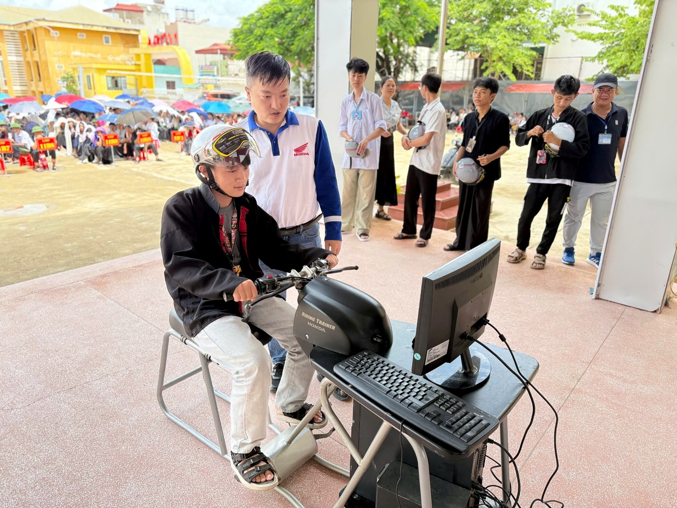 Chương trình còn có sự đồng hành của Đại lý Nam Á - Công ty Honda Việt Nam, trực tiếp hướng dẫn kỹ năng lái xe an toàn, kỹ năng xử lý tình huống trên đường, cách kiểm tra xe trước khi tham gia giao thông và thực hành đội mũ bảo hiểm đúng cách. Những phần thực hành sinh động, trực tiếp đã thu hút đông đảo học sinh tham gia, tạo không khí hào hứng, sôi nổi.
