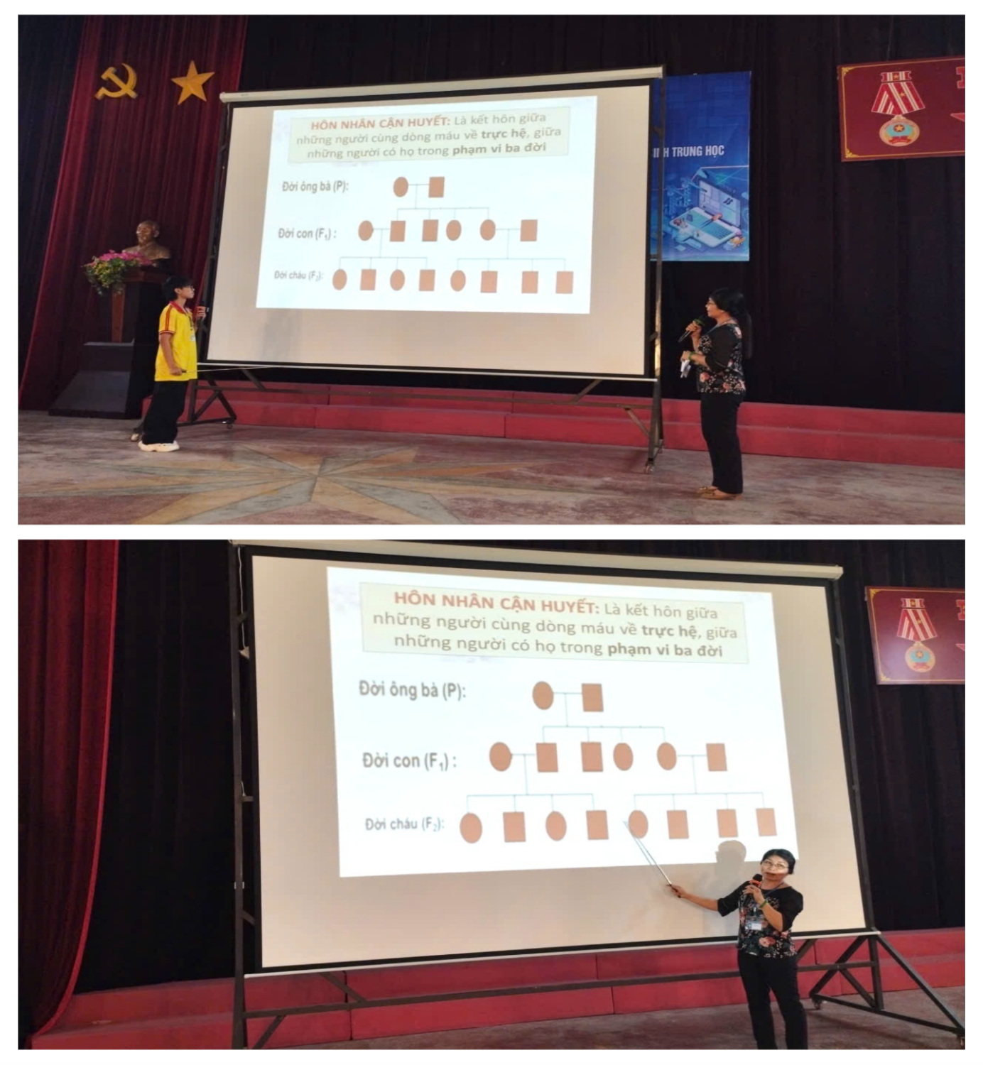 Với thế mạnh chuyên môn, nhóm giáo viên Sinh học đã lồng ghép kiến thức khoa học về di truyền học, sức khỏe sinh sản vị thành niên để phân tích những nguy cơ bệnh tật, dị tật bẩm sinh và hệ lụy lâu dài do hôn nhân cận huyết gây ra. Qua đó, học sinh không chỉ “nghe để biết” mà còn “hiểu để thay đổi nhận thức và hành vi”.