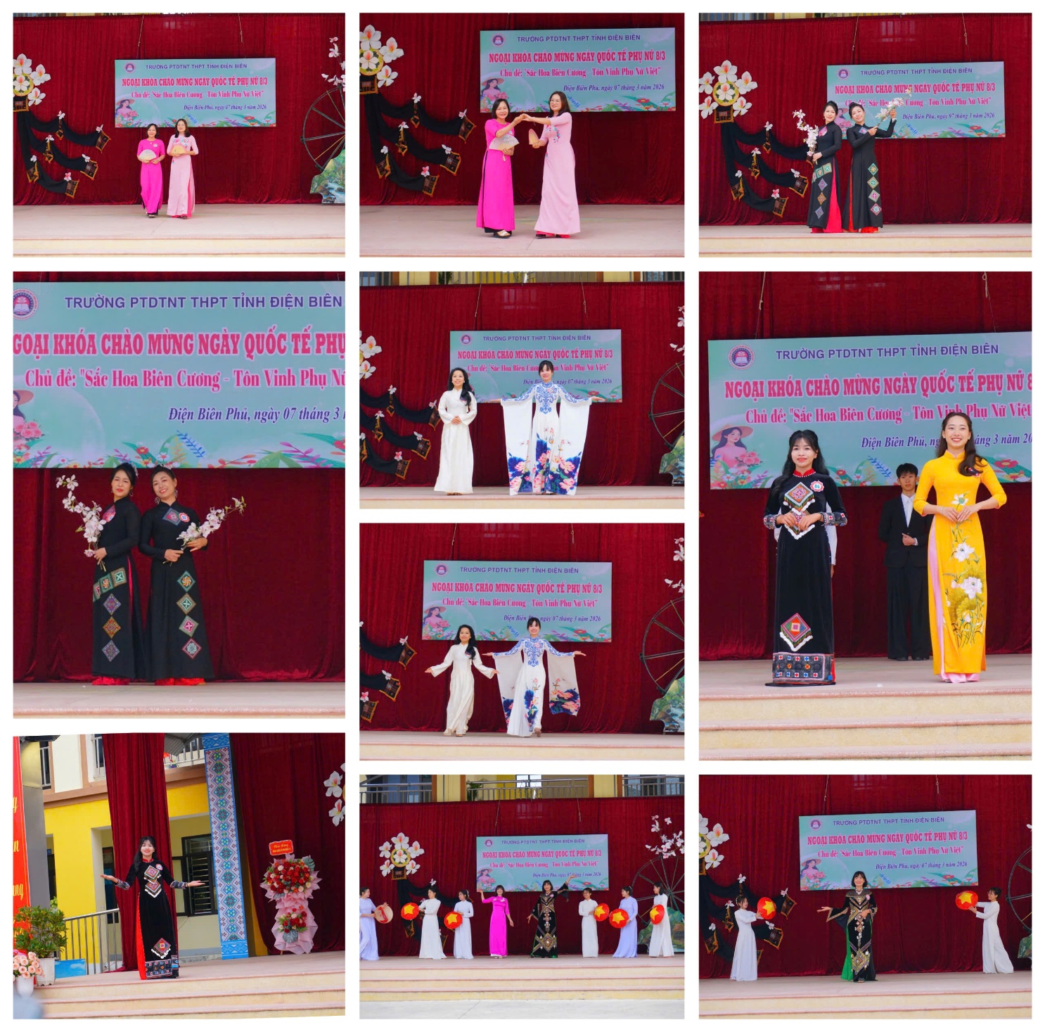 Hòa chung không khí vui tươi và hân hoan của mùa lễ hội hoa ban tại tỉnh Điện Biên, ngày 07/3/2026 Trường PTDTNT THPT tỉnh Điện Biên đã rộn ràng tổ chức chuỗi hoạt động chào mừng kỷ niệm 116 năm Ngày Quốc tế Phụ nữ (08/3/1910 - 08/3/2026) và 1986 năm Khởi nghĩa Hai Bà Trưng (40 - 2026). Với chủ đề “Sắc hoa biên cương - Tôn vinh phụ nữ Việt”, buổi ngoại khóa đã tạo nên một sân chơi văn hóa ý nghĩa, tôn vinh vẻ đẹp và tài năng của các thế hệ phụ nữ, tăng sự gắn kết chặt chẽ giữa các tổ chuyên môn và tập thể lớp, khối liên kết trong nhà trường.
