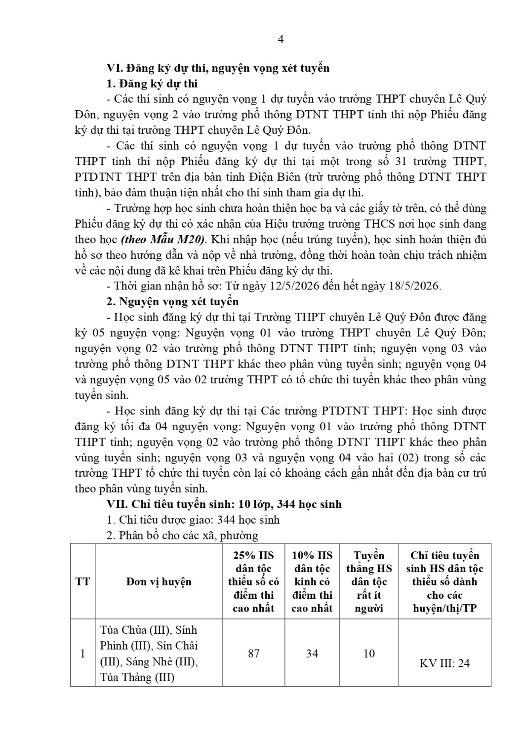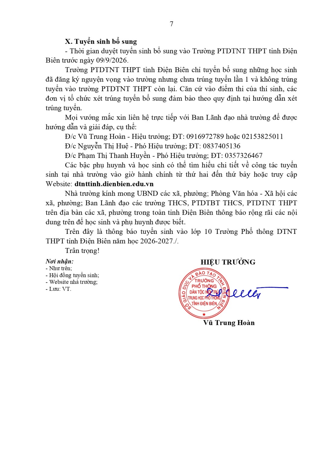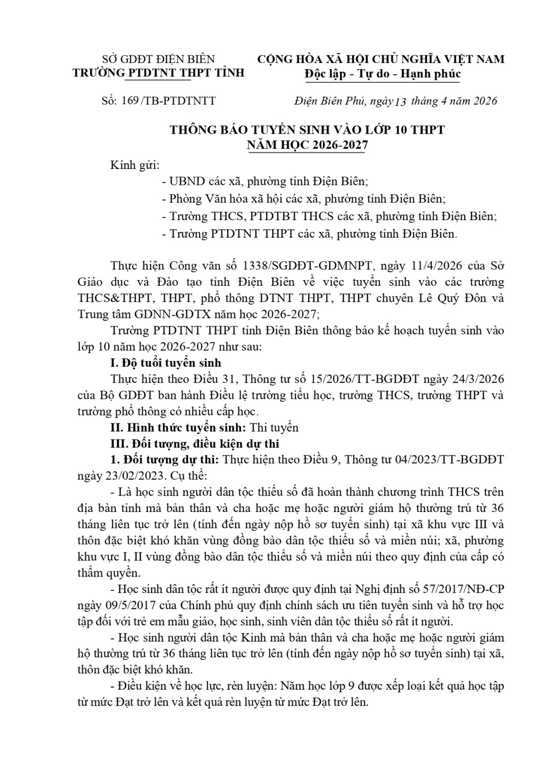 Trường PTDTNT THPT tỉnh Điện Biên thông báo tuyển sinh vào lớp 10, năm học 2026-2027!