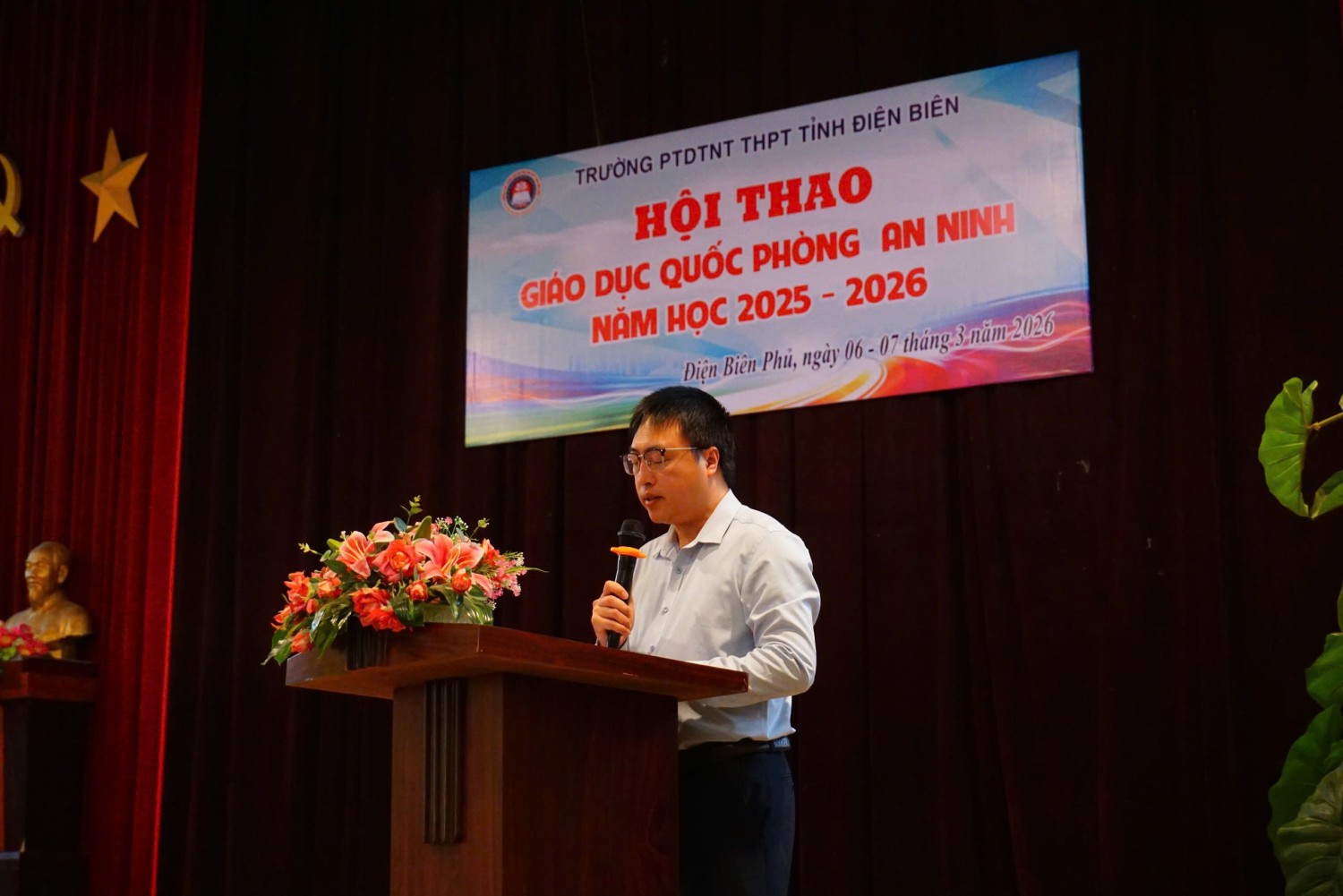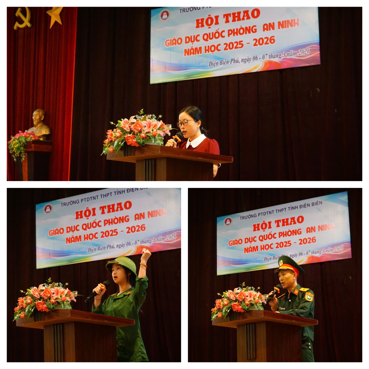 Phát biểu khai mạc Hội thao, Nhà giáo Vũ Trung Hoàn - Bí thư Đảng uỷ, Hiệu trưởng nhà trường nhấn mạnh: Giáo dục quốc phòng và an ninh là nội dung giáo dục quan trọng, góp phần bồi dưỡng cho học sinh lòng yêu nước, tinh thần trách nhiệm đối với Tổ quốc; đồng thời trang bị những kiến thức, kỹ năng cơ bản về quốc phòng - an ninh. Thầy cũng mong muốn các em học sinh tham gia Hội thao với tinh thần đoàn kết, trung thực, kỷ luật và quyết tâm đạt thành tích cao, qua đó tiếp tục phát huy truyền thống tốt đẹp của học sinh Trường PTDTNT THPT tỉnh Điện Biên.