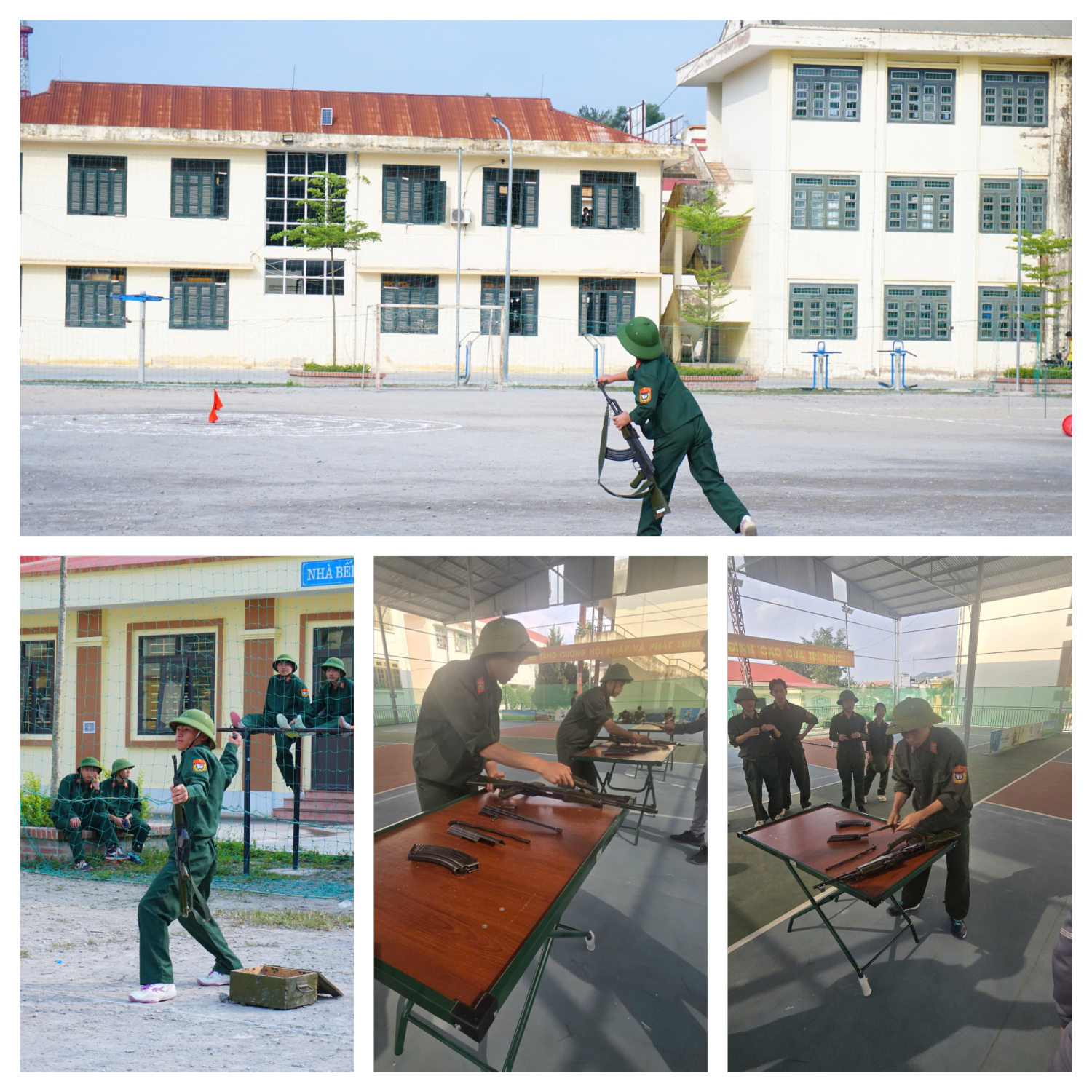 Đối với khối lớp 11, các em tranh tài ở nội dung ném lựu đạn xa trúng đích và tháo lắp súng tiểu liên AK ban ngày, đòi hỏi sự chính xác, bình tĩnh và thao tác đúng quy định kỹ thuật.