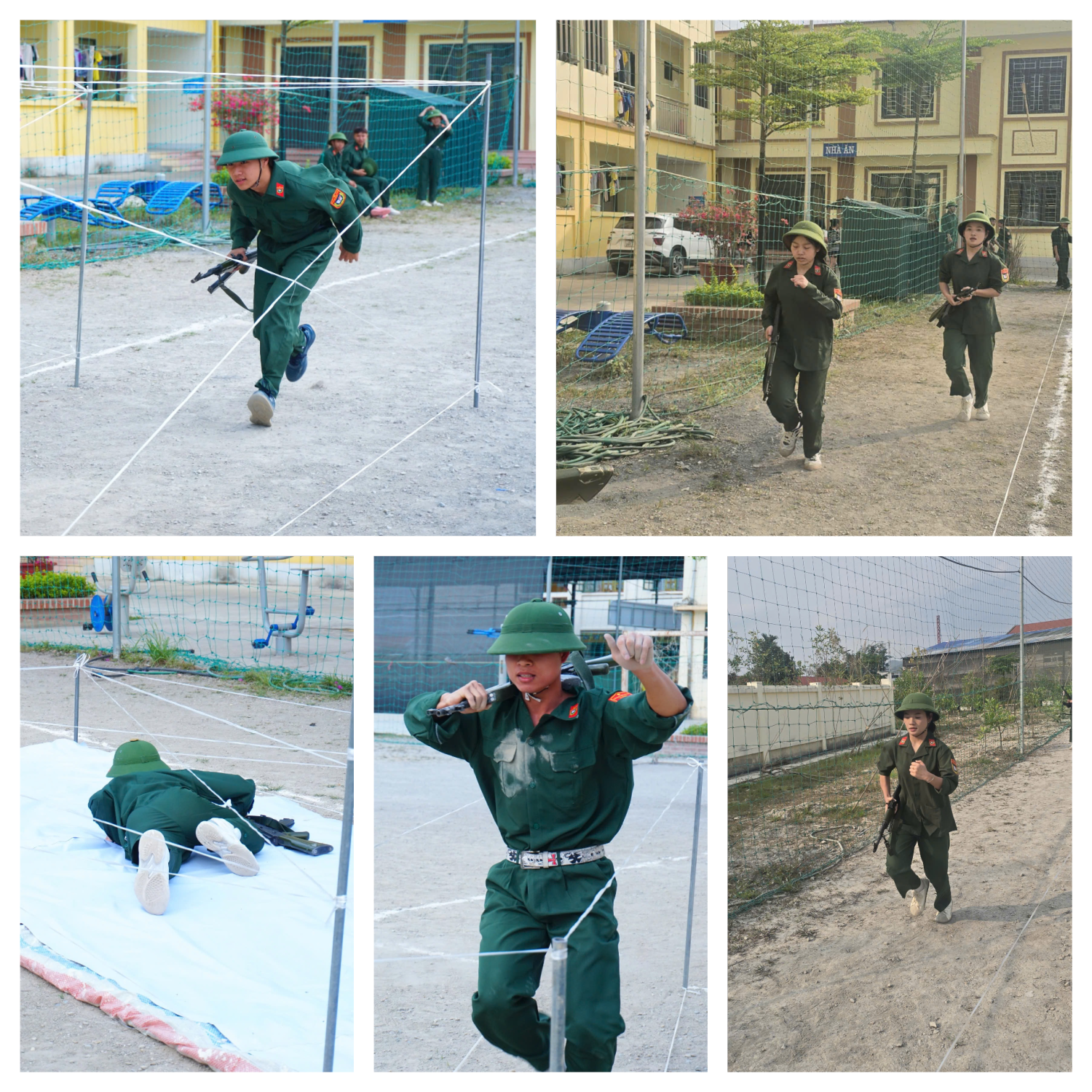 Đối với khối lớp 12, các em tham gia các phần thi mang tính vận động và thể lực cao như vận dụng các tư thế, động tác cơ bản khi vận động trong chiến đấu và chạy vũ trang 800m có mang súng AK. Những nội dung này yêu cầu thí sinh phải kết hợp linh hoạt giữa kỹ thuật quân sự và sức bền thể lực.