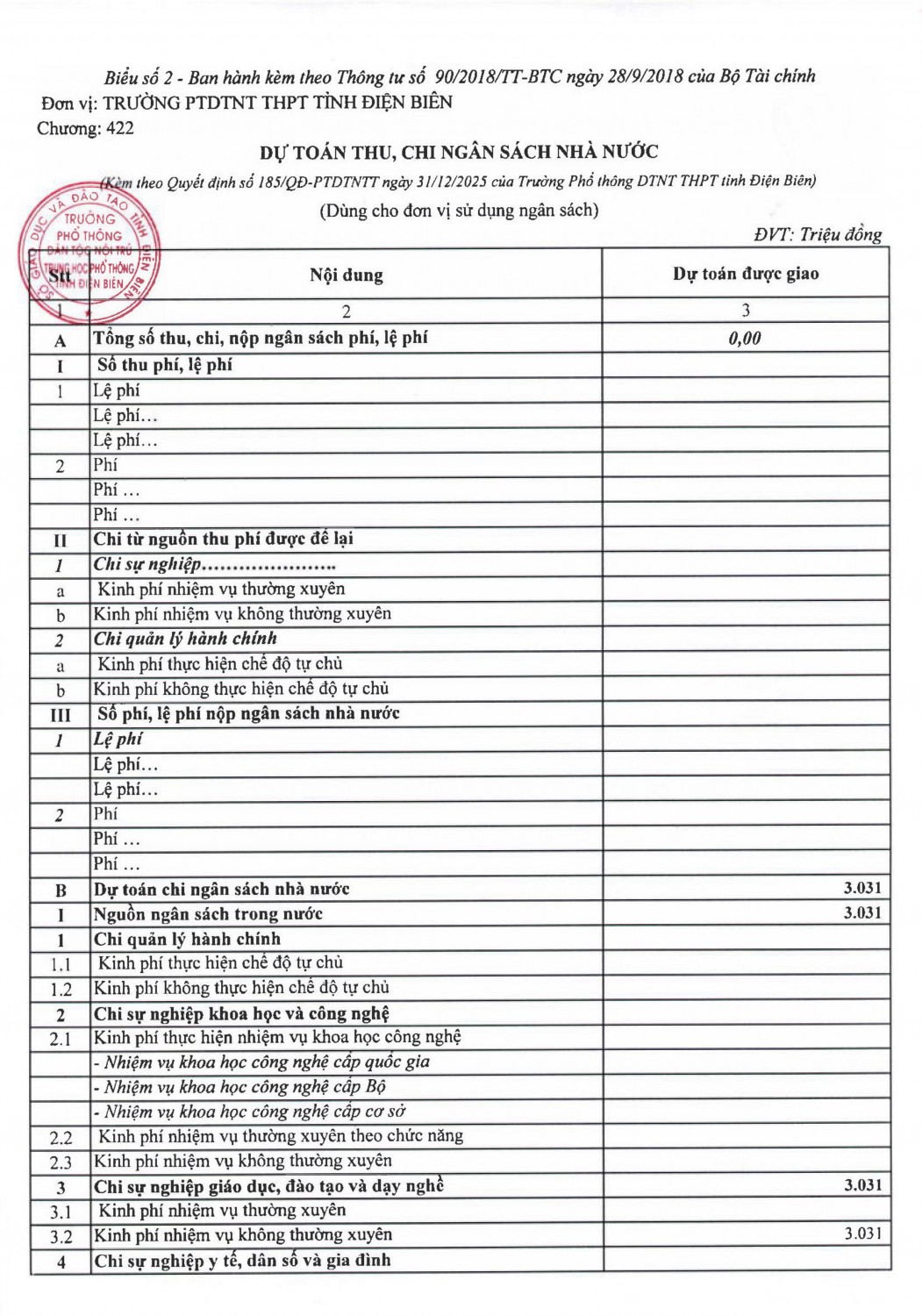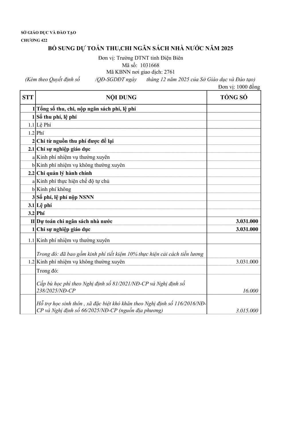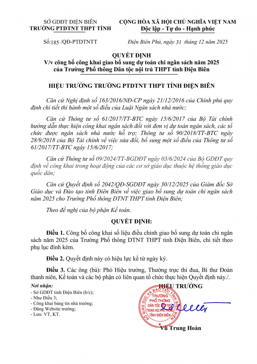 Trường PTDTNT tỉnh Điện Biên thông báo tuyển sinh vào lớp 10 năm học 2025-2026